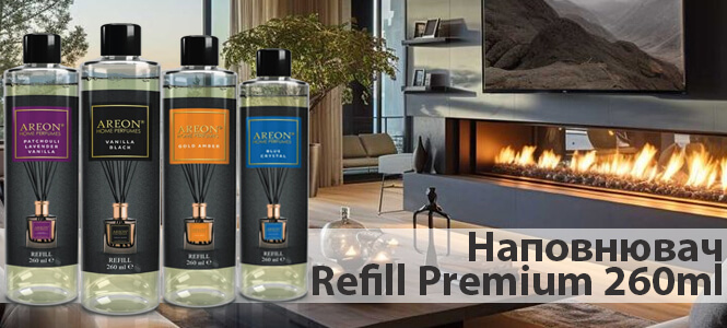 В преміальній серії «Ареон» 8 принципово нових аромата для ароматизації приміщень: дома, магазину, салону краси, готеля, офісу. В 2020 году дизайнери бренда повністью оновила зовнішній вид ароматизаторів Home Perfume Premium. При цьому Віші улюблені аромати залишились без змін.